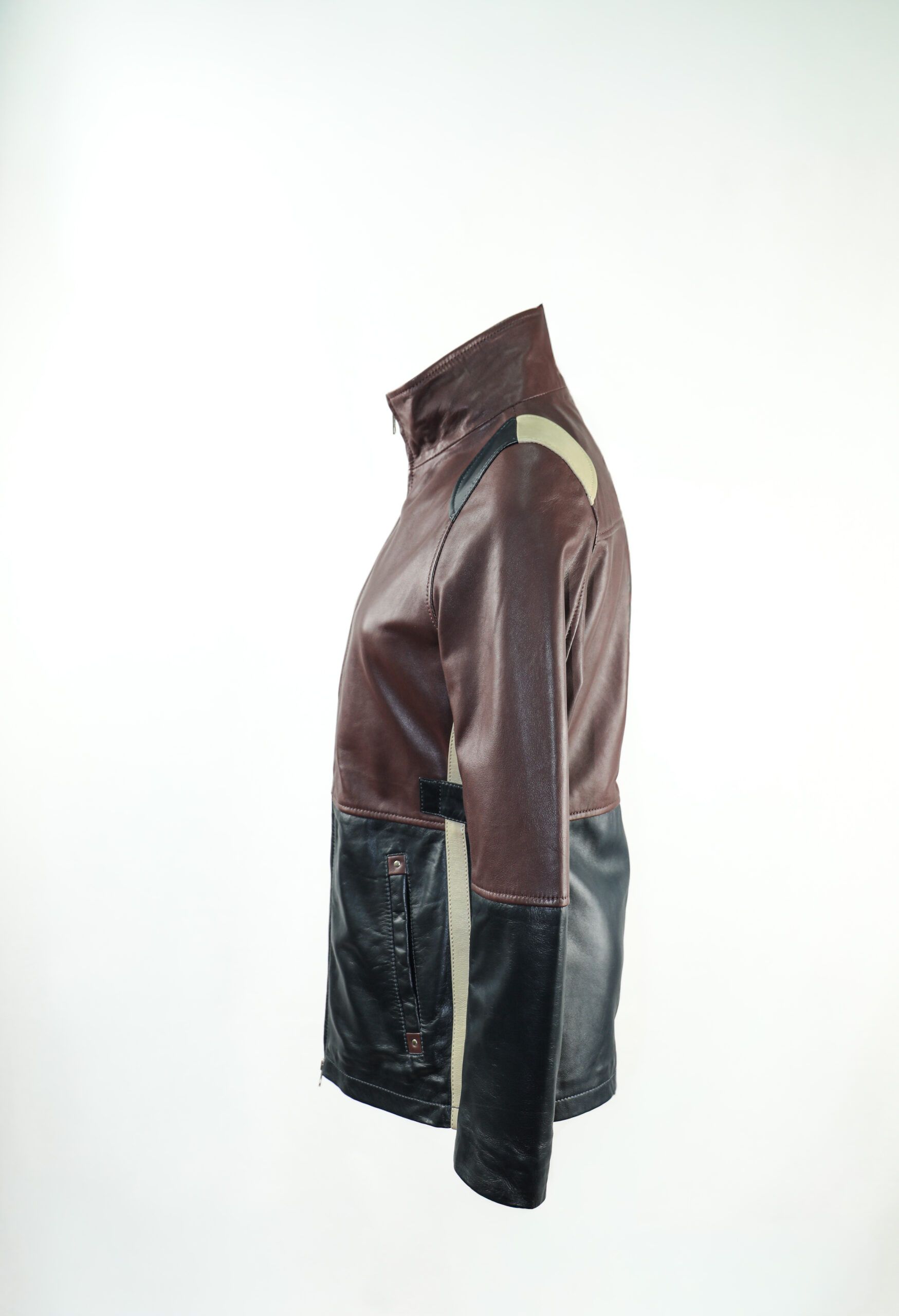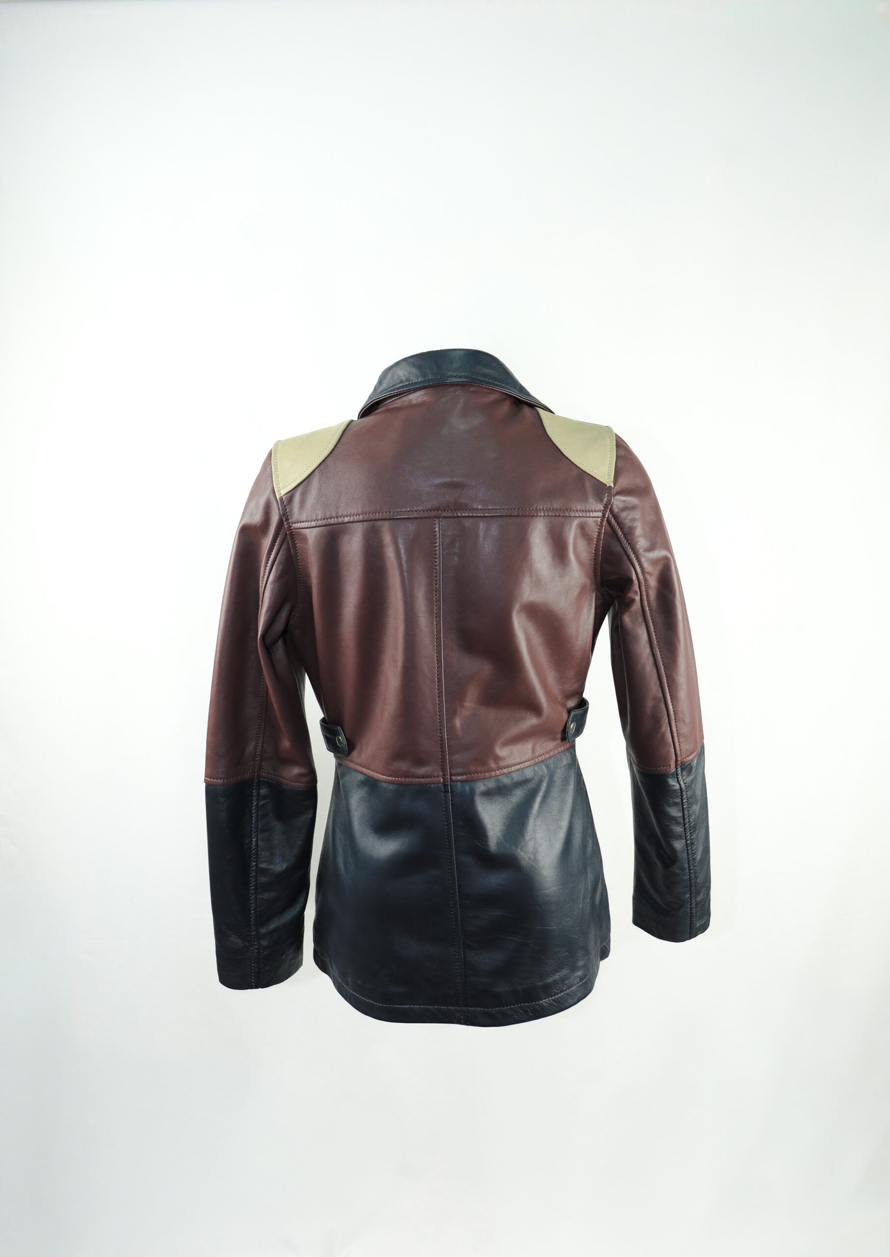 Confeccionada artesanalmente, cada prenda es el resultado de un proceso lento y consciente, donde la piel se trabaja con respeto y las costuras se ejecutan con precisión. La combinación de pieles teñidas a mano convierte cada chaqueta en única, con matices que la hacen irrepetible.