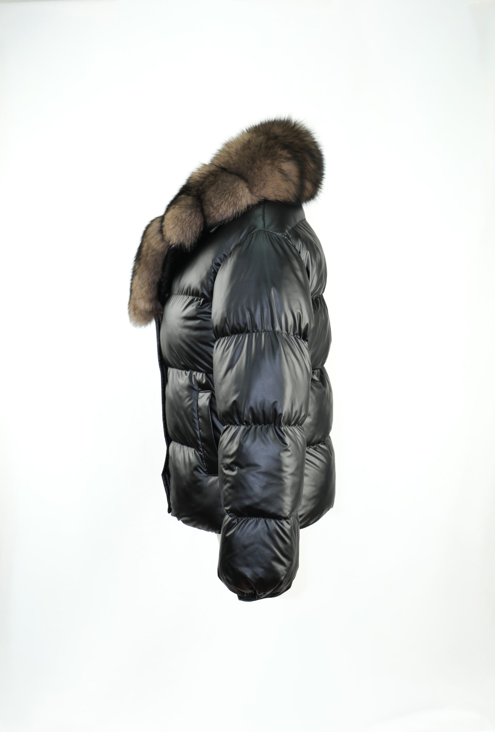 Este modelo trabaja un volumen generoso y armónico: el cuerpo en poliéster 100% , ligeramente brillante y con un tacto denso y protector, se acompaña de un cuello ancho confeccionado con piel auténtica de Renard Bleau -Zorro Siberia- en un tono negro sutil. El efecto es un contraste lleno de fuerza, que aporta presencia sin estridencias. LYNN es ideal tanto para el día a día como para ocasiones más especiales: combina con jerséis de lana fina, pantalón recto o faldas midi, creando una silueta cálida y equilibrada.