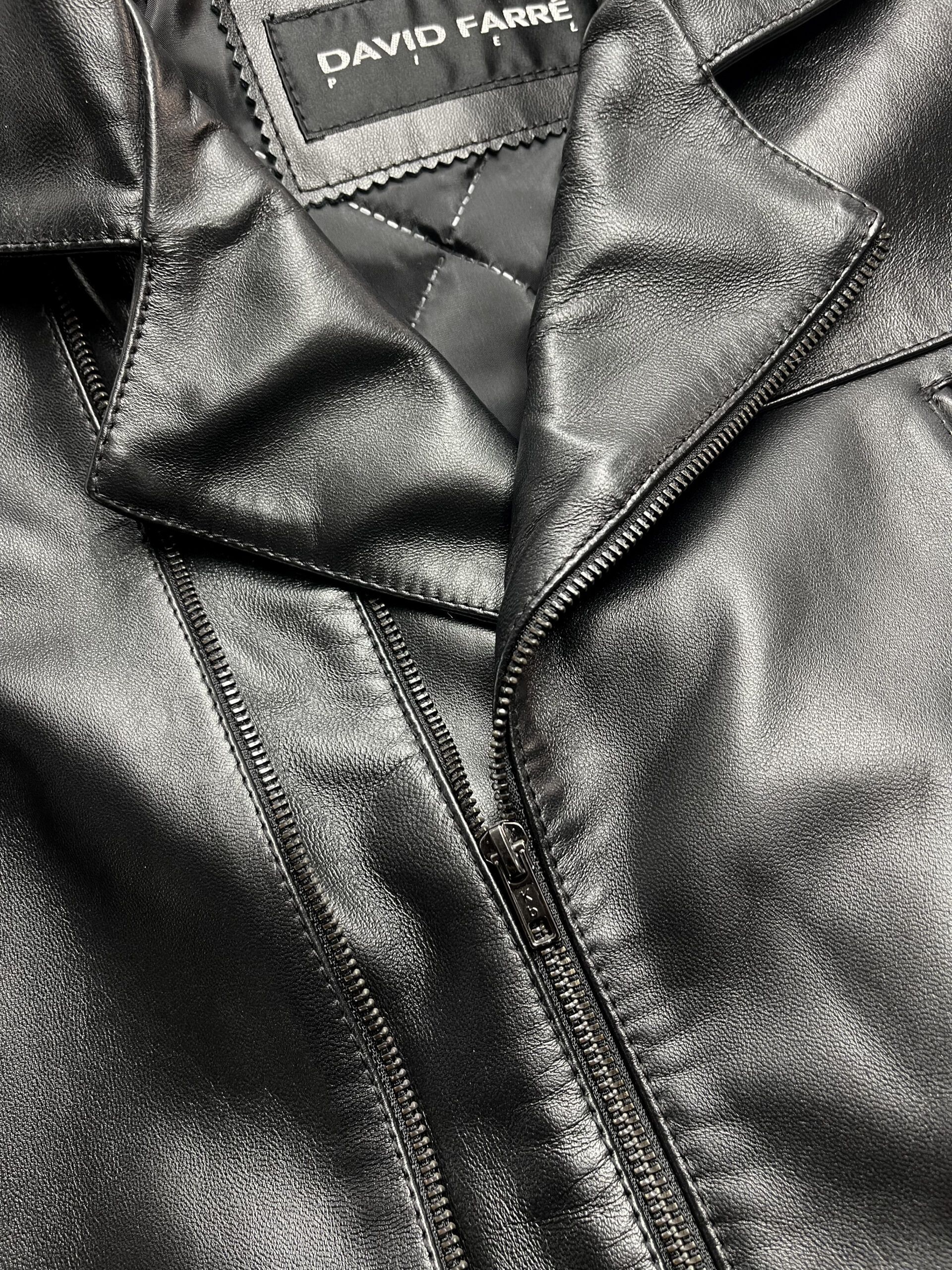 Confeccionada a mano con cuero negro de ovino de alta calidad. Cada elemento está pensado para resistir el paso del tiempo tanto en uso como en diseño.