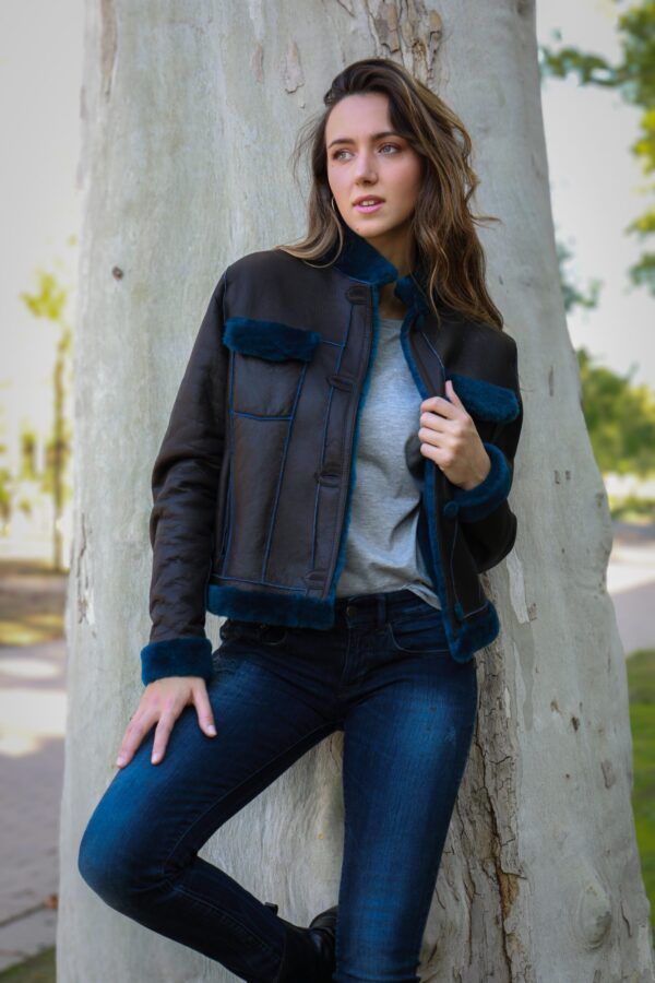 La chaqueta de lana con cuello de pelo SCARLET,  combina estructura y calidez con un carácter sofisticado. Una pieza atemporal de moda artesanal, hecha a mano, ideal para elevar cualquier look de invierno.