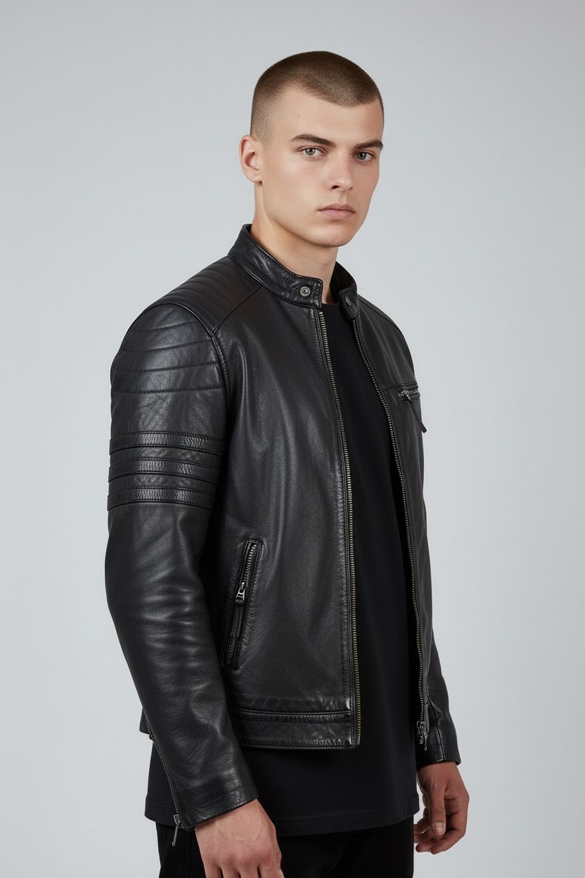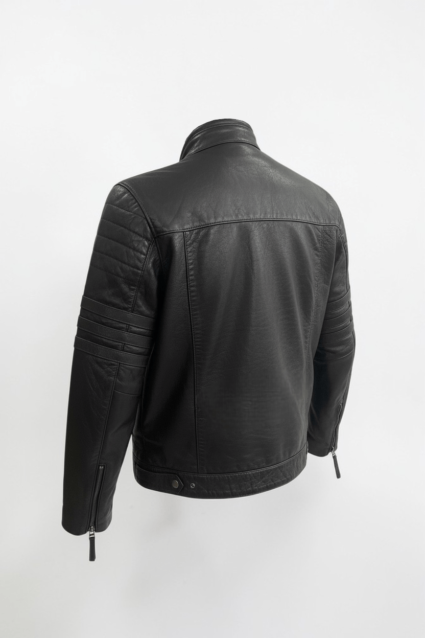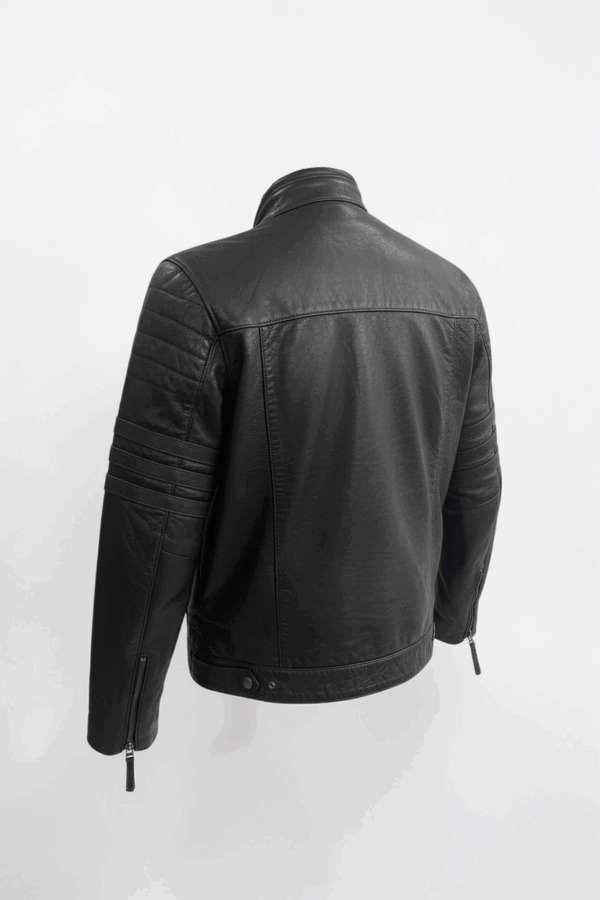 La chaqueta Sierra combina la estética clásica biker con un enfoque más moderno y versátil. Confeccionada en cuero negro de acabado ligeramente texturizado, destaca por su estructura limpia, cremalleras metálicas y detalles en mangas que aportan personalidad sin recargar el diseño.